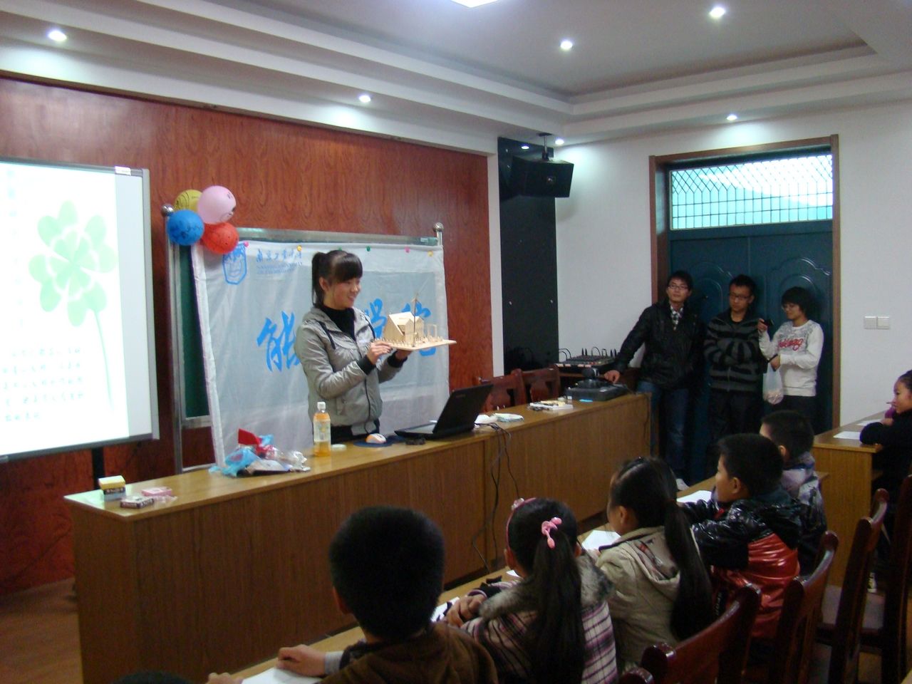 此次活动共分为三个课时,分别由热能1001、1002和1003班负责组织。同学们通过精心准备的PPT为小员工们讲解了一些基础的节能环保知识,让小员工们意识到当前能源紧缺和环境污染生态破坏严重的事实。同时,他们为小员工们展示了一些废旧物品改造作品,鼓励小员工们积极动脑,充分利用废旧物品,减少对环境的破坏。整个活动充满欢笑,小员工们在轻松的气氛中学到了不少环保知识。在环保课程开展的同时,公司员工记者对陆再兴董事长进行了采访。记者们针对该校的环保教育开展情况进行了深入了解,并对本次宣传活动进行了一些探讨,为下次活动的开展提供了宝贵经验。