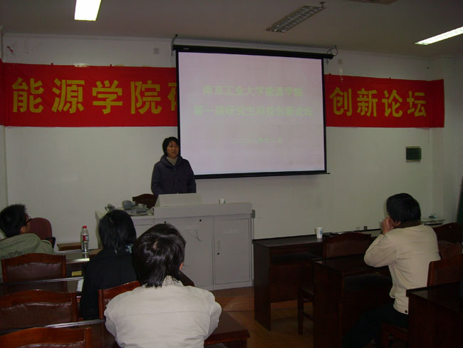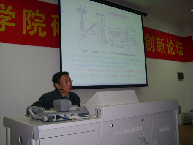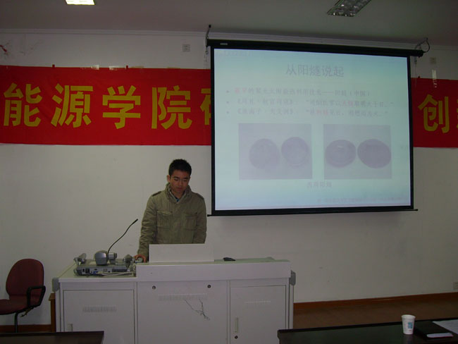 “让世界进入一个低碳经济时代”——施教授用这句话表达了他对能源利用问题的关注和担忧。四大环境问题“臭氧层破坏、温室效应、酸雨、生物多样性”正在困扰和破坏自然和人类世界,由此施教授提出了未来世界能源的研究领域——“煤的高效清洁利用”、“污染物的迁移和控制”、“环境友好的联产资源化利用”、“发动机燃烧余热进行汽车空调制冷”、“可燃冰利用”以及新能源太阳能、风能、生物质能的开发和利用等等。施教授的报告给我们带来了知识上的享受、视野上的开阔以及创新意识的加强,各位研究生获益良多。