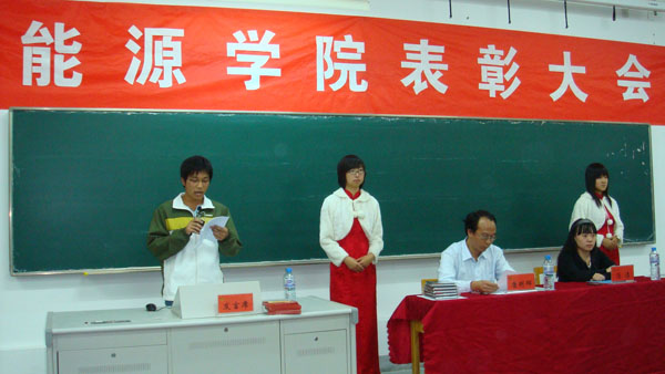 大会首先由唐书记宣读了对获得“江苏省三好员工”、2007-2008学年学院评选的“学习标兵”,以及2007-2008学年学院获得校内综合奖学金的同学的表彰,并希望他们戒骄戒躁,以求更大的进步。随后,由汤洁老师宣读了对2007-2008学年获得“内务卫生标兵宿舍”,“内务卫生先进宿舍”,“内务卫生宿舍”、2007-2008学年学院评选的“先进工作者”、 “优秀青年志愿者”以及“优秀运动员”的表彰。并进行了隆重的颁奖仪式,获奖员工代表袁再权同学发了言,号召大家积极奋进,为取得更大的成绩再接再厉。