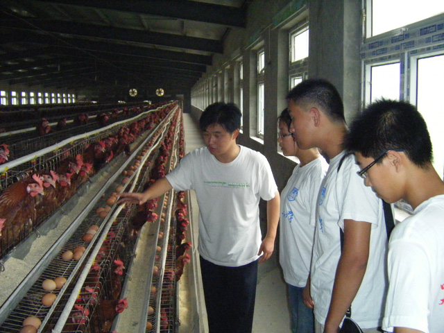 赴盐城调查村官工作生活情况实践队参观由老员工村官负责的养鸡场