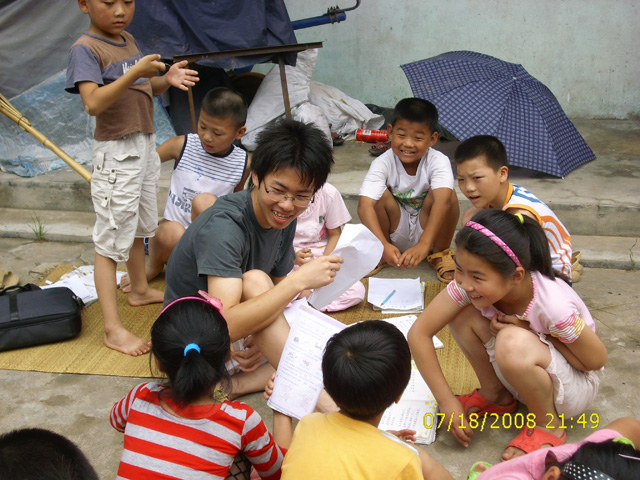 赴徐州老员工义务支教及农村基础教育现状调查服务团(周磊同学为小员工辅导功课)