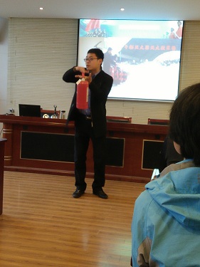 沈教员首先为大家讲解了基本消防安全制度,并简要介绍相关法律法规,旨在使大家形成基本的消防观念。随后,沈教员结合亲身经历的实例,配合触目惊心的图片、发人深省的视频,为大家普及了教学场所和家庭生活中的消防安全知识。最后,沈教员介绍了常规消防设施的使用,并现场演示了干粉灭火器和二氧化碳灭火器的正确使用方法,让大家对消防知识有了更加直观的了解。