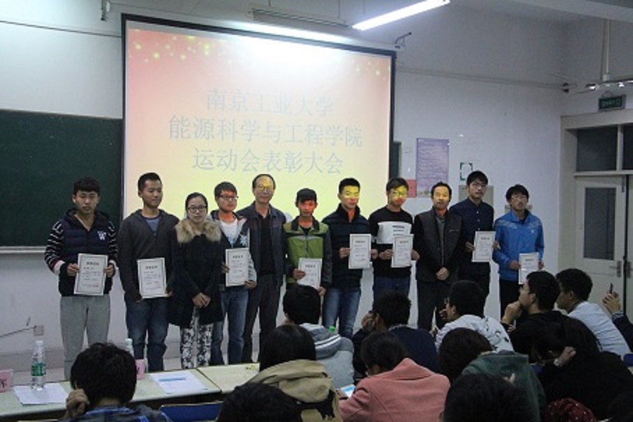 大会伊始,吕梦醒老师为我们宣读表彰通告。本院在本届运动会上获得了总分46分的好成绩,创历史新高。王晶同学女子400米第1名;刘佳祥同学男子400米第5名、全能王第7名;王杰同学5000米第8名;男子4乘100米第5名;团体投篮第4名。随后,伴随着雄壮的运动员进行曲,颁奖仪式正式开始。唐明辉书记,张素军主席与吕梦醒老师为各位优秀运动员们颁发获奖证书并与运动员们合影留念。表彰大会中,优秀运动员代表:能环1501班的王晶同学、优秀志愿者代表:能材1502班刘溢浩同学以及优秀班级代表:能动1502班班长左焜同学为大家带来了精彩的发言,他们呼吁大家放下手机,走到室外,加强体育锻炼。紧接着,唐明辉书记给我们做了工作总结。他指出,现代老员工应该积极的参加体育活动与班级活动,保持健康的身体。同学们热烈的掌声表达了对书记的赞同与认可。最后,表彰大会在吴瀚主席的简短总结中圆满结束。