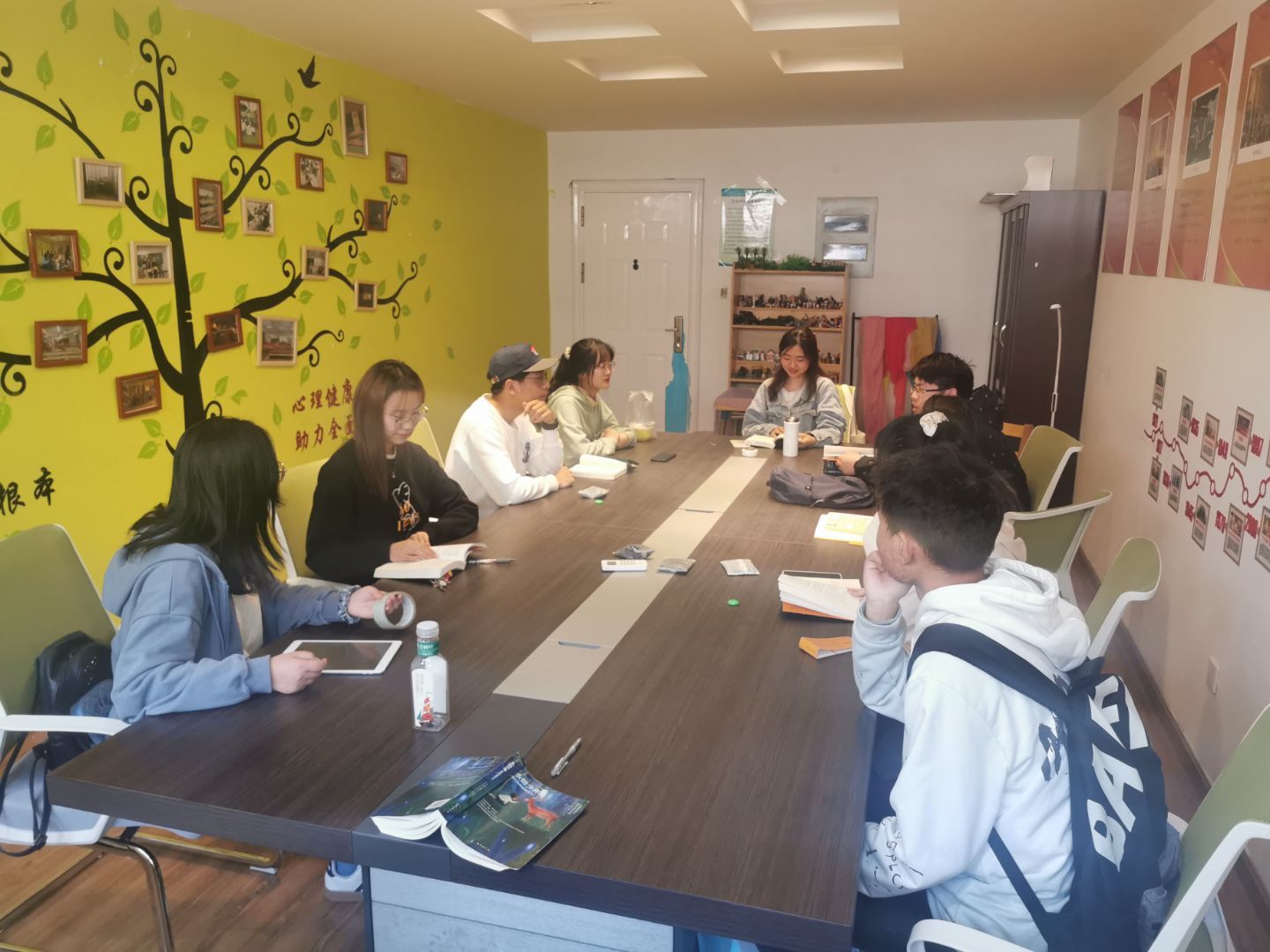 这学期我们将阅读书目《永恒少年》。在签署了保密协议后,成员们按照抽签顺序落座并开始了阅读。首先,领读人针对书中关于永恒少年心中的母性女神原型发起了讨论,大家依次说出了自己的看法。在倾听他人的想法时,同学们也会因为有相同的想法和经历而产生共鸣。热烈的讨论让大家对问题背后所显现出的原型意像有了更深刻的理解和感受,讨论中也可以看出男性与女性在思考问题时的差异,展现了思维的多样性。整场读书会热情而有趣,开放而包容,每个人都畅所欲言。最后,每人通过一个词语,概述参与本次读书交流会的感受。