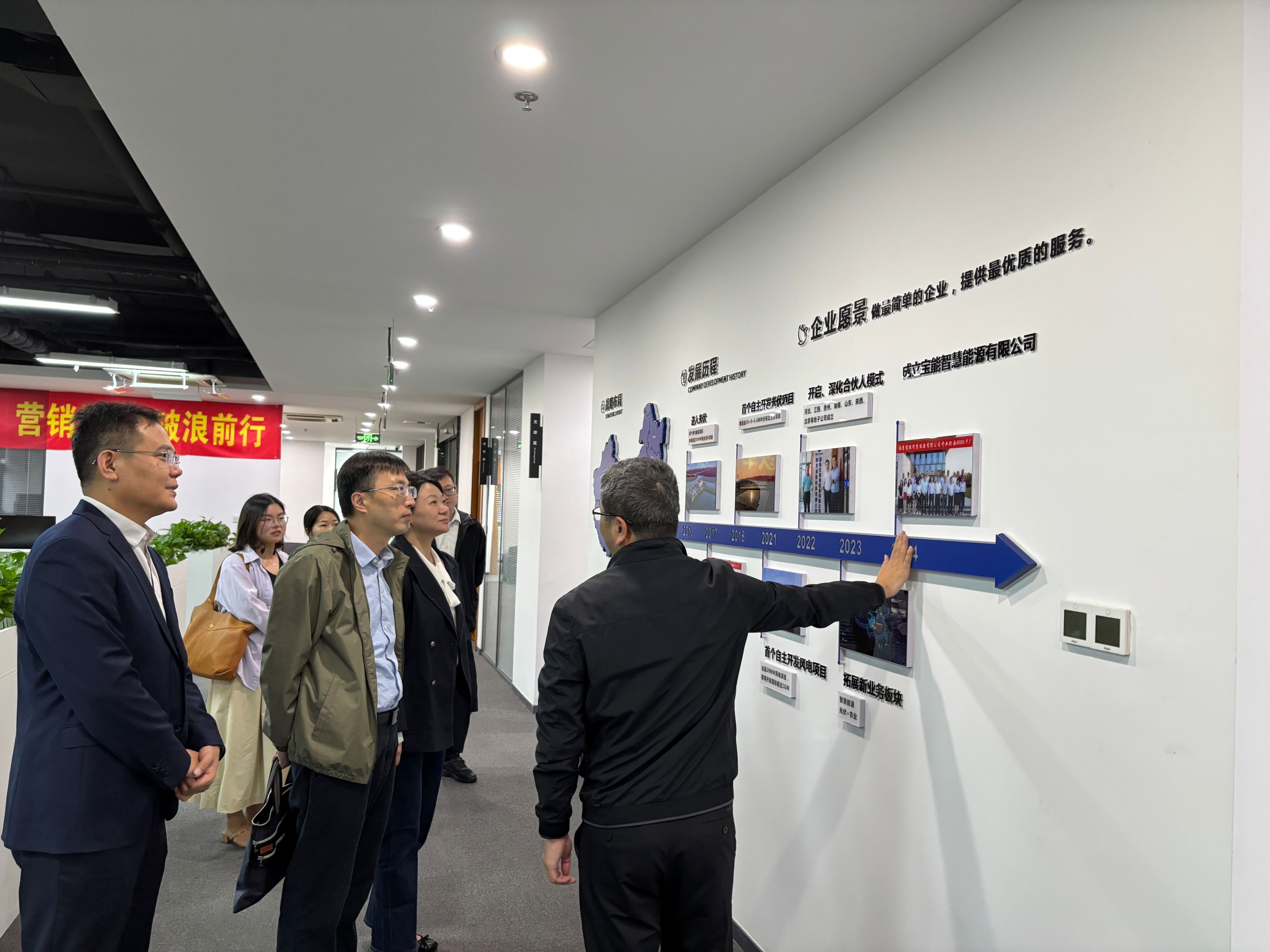 为全面拓展校企合作平台,加快推动科研成果转化,全面落实“访企拓岗”工作要求,加快推动毕业生实现高质量就业,10月18日下午,公司党委书记丁贤,党委副书记、经理周剑秋,党委副书记王洪洲,储能科学与工程专业系主任叶季蕾,青年教师代表殷文倩等一行赴南京宝能智慧能源有限公司开展共建交流活动。活动由公司董事长、公司2005届员工邢志国主持。