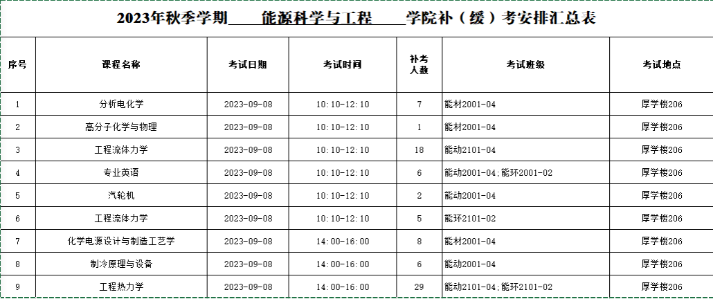 2023年秋季学期betway西汉姆联补(缓)考安排汇总表(自排)